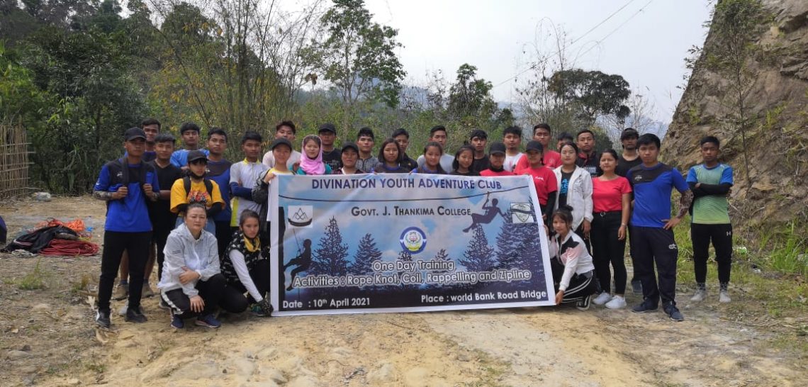 On 10th April, 2021, the Divination of Youth Adventure Club, Govt. J. Thankima College has successfully organised One Day Training at World Bank Road Bridge. On this training, various adventure activities like Rope Knot, Rope Hitch, Rope Coil, Rapelling Overhanged and Zipline were conducted. 36 students, 3 instructors form Department of Disaster Management and Miss Zoteii (Professor Incharge) attended the training.