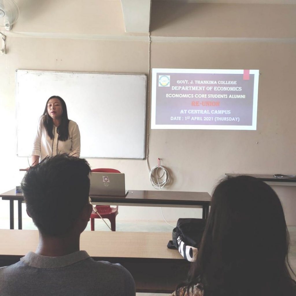 Economics Core Re-Union was organize by the Dept. of Economics, GJTC on 1st April, 2021 at Economics Core Room, Central Campus. The Re-Union was presided by Mrs. Lalrinfeli, HoD, Dept. of Economics. Various issues like maintenance and upkeep of Ex-Students Whatsapp Group, Contribution of Books for establishment of Departmental Library etc were discussed.